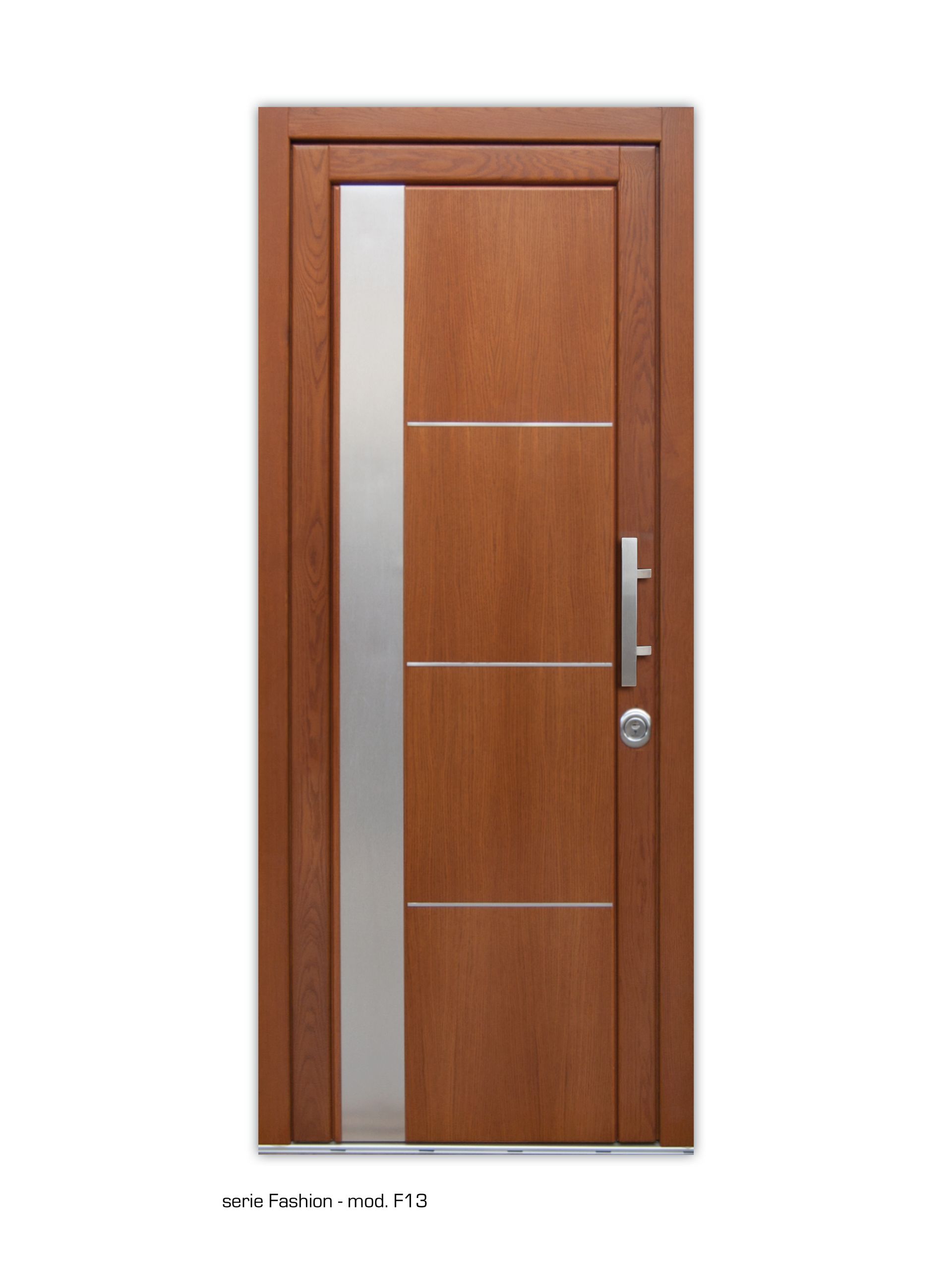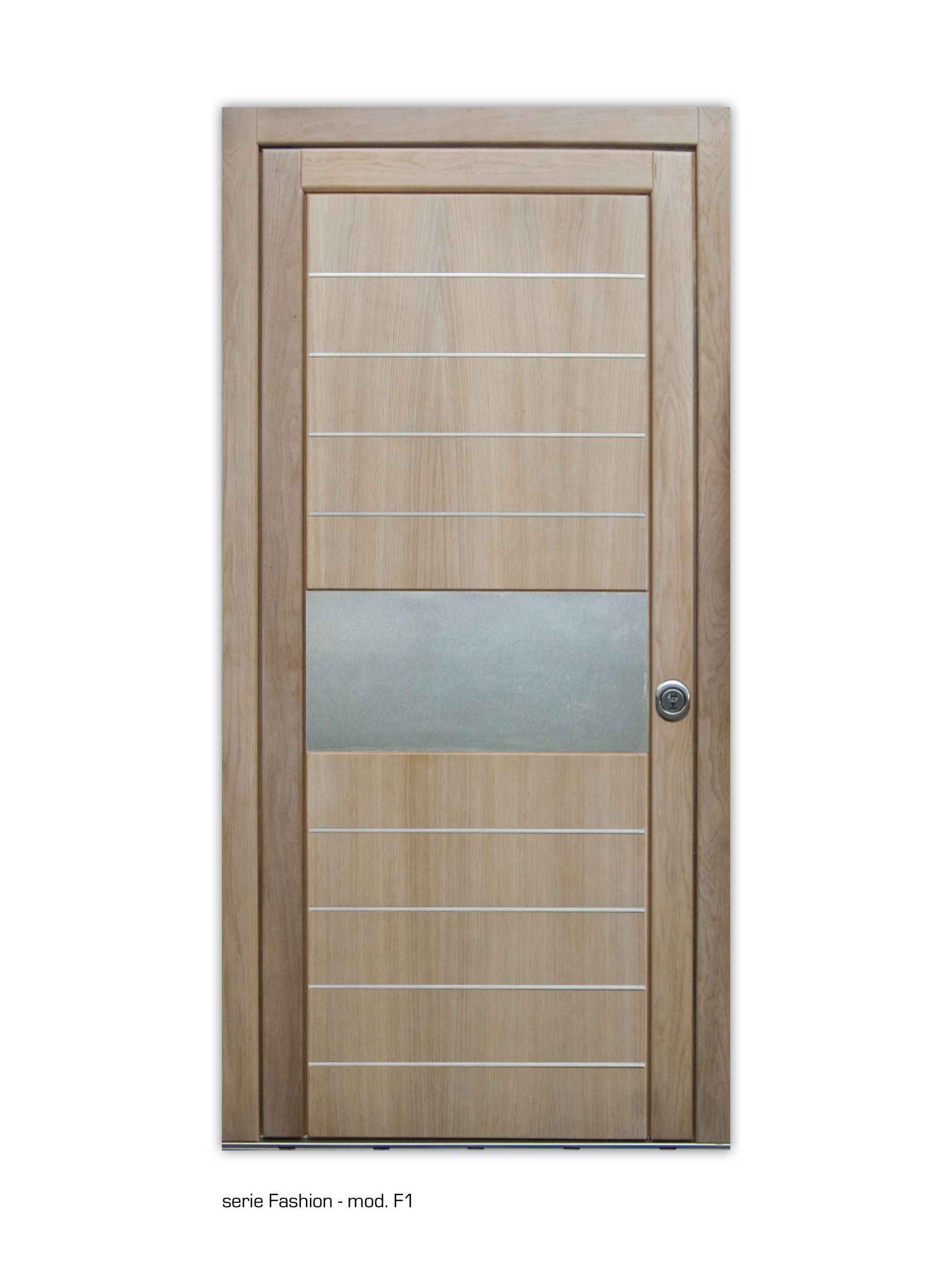 I modelli Fashion presentano fasce ed inserti in alluminio che, in contrasto con il legno, donano personalità al portone. Tutta la serie Fashion è personalizzabile. La pannellatura ha uno spessore totale di 20 mm, se applicata sul lato esterno, e di 12 mm, se applicata sul lato interno. La serie Fashion è realizzabile in essenza Rovere, Castagno, Okumè e Pino ed è personalizzabile nelle sue dimensioni. La serie Fashion è realizzabile sia per il lato esterno, sia per il lato interno.