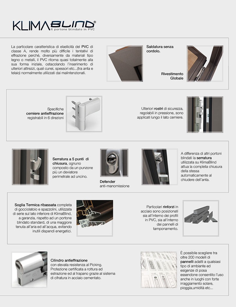 Scoprite in dettaglio quali sono le caratteristiche tecniche che rendono così potente il portone di ingresso KLIMABLID.