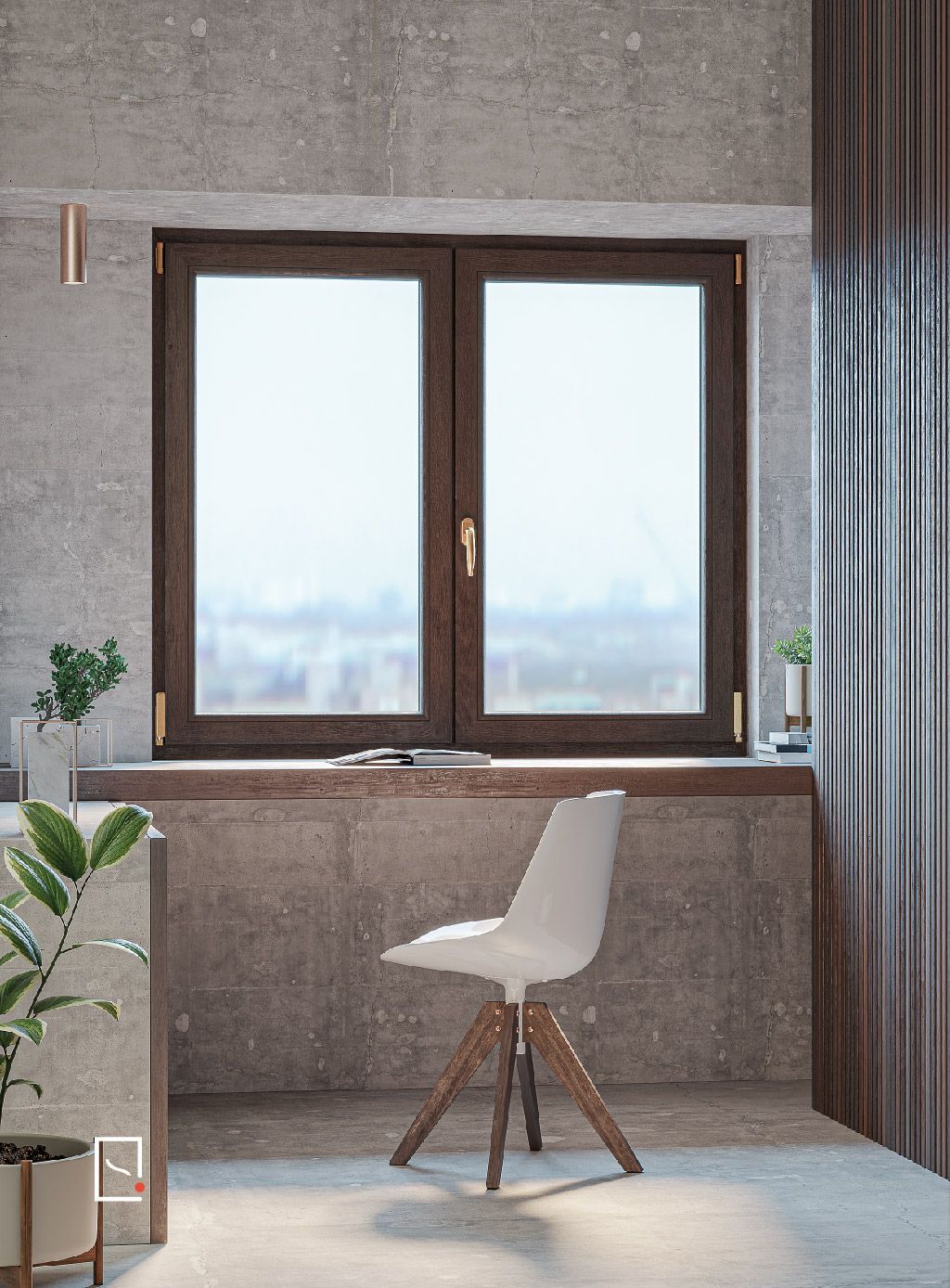 Sistema a doppia guarnizione di battuta e profili a 5 camere arrotondato esternamente. Sistema versatile adatto a interventi di ristrutturazione.